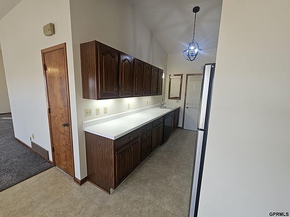 Beautiful Duplex Townhouse in over age 50 community, Level access to rear on private street to covered carport 2 bed, 2 bath, washer, dryer, stove & refrigerator included, owners suite with bath, laundry room in main bath, very large open living room, dining room, wonderful view of downtown, newer flooring, Ready to move into. Snow removal & mowing are performed by an outside company for the whole community at a minimal extra cost, Separate single or double garage available just across from the unit at extra cost. Walking distance to many businesses and activities. This is an end unit that has open space to the south. Also has private patio area.