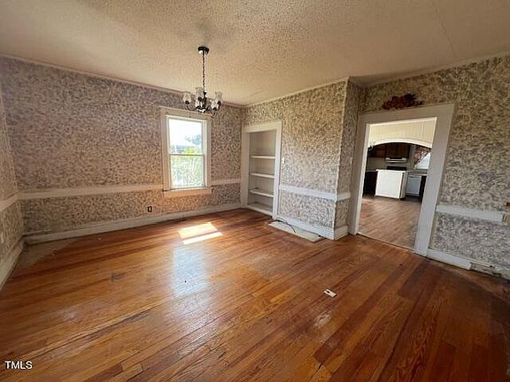 This property is priced to sell. Property features 2 bedrooms with nice sized closets, 1 bathroom, living room, kitchen with plenty of counter and cabinets, dining area, laundry room, and attic storage. Includes a storage building, screened front porch, and fenced yard on a corner lot. House has original hardwood floors. Refrigerator, washer and dryer convey. Great starter home or investment property. Near parks and shopping. Close to I-40 and I-95. Don't miss this great buy.