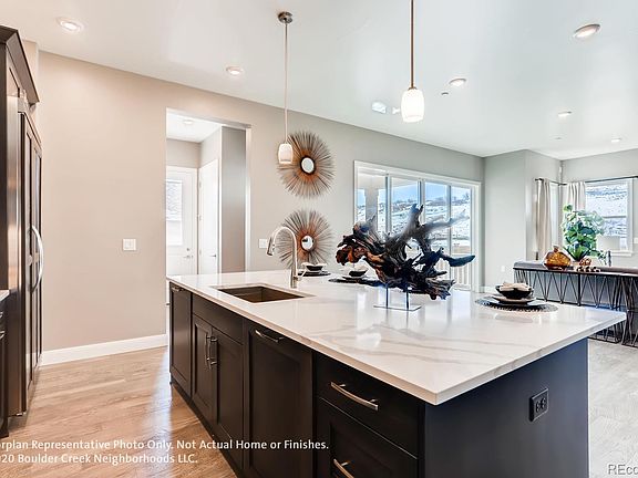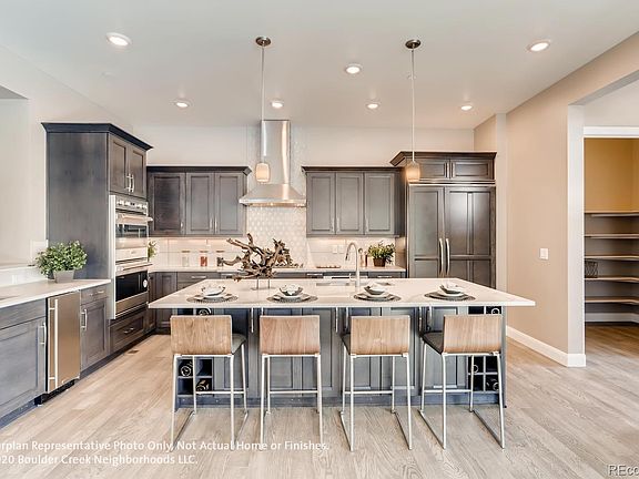 Located in the sought-after haven of Superior, Rogers Farm combines Low maintenance living with fenced in backyards with these stunning single family homes. With easy access to Boulder and Denver, this Plan 2 has an entertainers kitchen with Thermadore or Viking appliance package with built-in refrigerator, two built-in dishwashers, and two convection ovens. It also has an entertainers bar with wine refrigerator and ice maker. The 10' high ceilings add to the beautiful open floor plan for this two story single family home with fenced in back yard and low maintenance front yard. This farm house style home also boasts a three car garage with an unfinished second story for your extra storage needs. This neighborhood is located in original town Superior which means that you can walk to shops and restaurants or ride bike on the Coal Creek trail. Photos of Model. Move In December 2020.