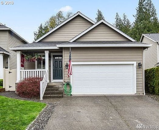 This affordable Ridgefield home is located in the highly desirable Union school area! Floor plan offers large rooms including a great room & kitchen with island & hanging rack holder. Gas range, built in microwave, gas water heater, furnace & central a/c. Murphy Bed stays. Very picturesque lot that backs to the greenbelt. 2 car garage. Wonderful outdoor living in the back with fresh sod, side dog run, relaxing fenced in area for garden.