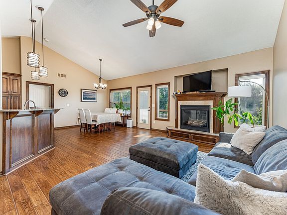 Welcome to the beautiful patio home community of Bel Riv. One of the few 5 bedroom homes in this neighborhood, #306 boasts nearly 3,000 total square feet of living space. Stepping into this lovely split bedroom plan, you'll love the main level hardwood flooring, rich fixtures, and gas fireplace. The kitchen is complete with maple cabinets, stainless appliances, undermount lighting, and granite surfaces, a pantry and just off the garage entrance is the most perfect drop zone for shoes, coats, bags, and washer/dryer hook up accessibility. The Primary Suite includes double sink vanity, soaker tub, glass shower, and a nice sized walk-in closet. The main floor is complete with 2 carpeted bedrooms and a full bath. This Lower level view out family room is generous in size and is flanked by 2 additional Bedrooms. The lower level storage room and laundry room has new vinyl flooring and includes the Washer, Dryer, and shelving. The 3 car garage is fully finished, with epoxy flooring, insulated and finished walls, and wired for 200 amp service. Summer enjoyment to be had on this east facing covered deck and patio. Wrought iron fencing provides a lovely touch to the already landscaped yard. HOA maintains the water well and irrigation system, along with the back fence that will be replaced when road construction is complete. Nice and quiet, this neighborhood is convenient to the major thoroughfares, shopping, dining, and entertainment. Enjoy the greenbelt, pond, and the new sidewalk and bike paths to be completed by the first of the year. Call the listing agent directly for your uninterrupted private tour of this lovely property.