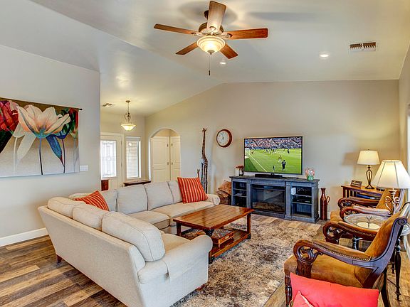 This is the one! This 3 bedroom, 2 bathroom, single level home features 1,558 sq. ft., a 2 car garage beautiful landscaping and mountain views from the back deck. The living room has vaulted ceiling, laminate wood floors and an open floor plan. The you'll love the kitchen with quarts counter tops, a dual fuel oven with gas cook top and a breakfast bar. The master suite features a walk-in closet, double sinks and a large walk-in shower. The backyard is fenced, has a covered patio and also a Trex deck. It's the perfect place for barbequing, entertaining and enjoying the beautiful Payson weather.