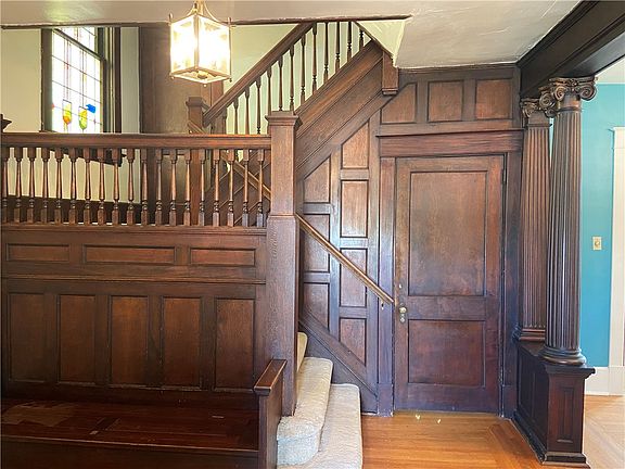 Spacious Victorian architecture greets you at the front door with original warm wood parlor and bench seat. The wood columns lead you to the living room with gas fireplace and original tile surround. Wood pocket doors from the living room to the bright dining room showcase the beautiful original wood floors and built-ins. The bright, equipped kitchen features cherry cabinetry, newer refrigerator and new dishwasher. 4 bedrooms and 1 bath are on the 2nd floor and on the 3rd floor, you'll find another 2 rooms and a vintage 3-piece bathroom. At the back door, you'll find a new oversized deck that overlooks the fenced back yard and 2-car garage. Northgate school district, across from the Avalon Public Library, walking distance to Bellevue business district. Short drive to downtown, I-279, and Pittsburgh International Airport.