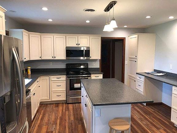 Nice brick home on 2+ acres at the edge of town. Three outbuildings, mature trees, and a wood-burning fireplace. Complete renovation in 2019 includes new windows, kitchen, bathrooms, heat pump, paint, and flooring. Camper storage space and outlet for camper hook-up.