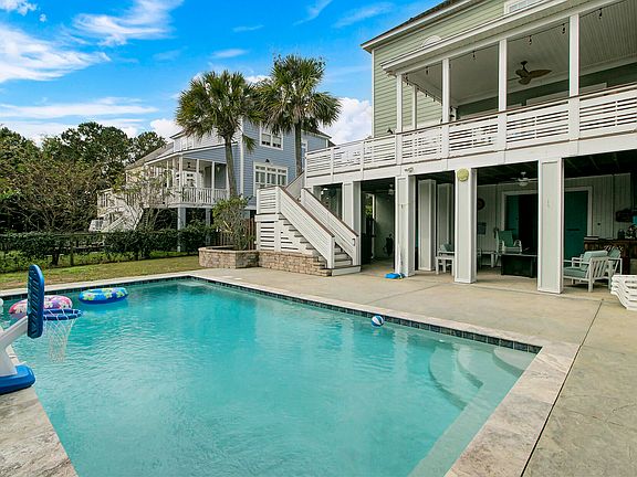 Least expensive ppsf on Daniel Island with a BACKYARD OASIS featuring a PRIVATE POOL! Enjoy the gorgeous covered and open deck, elevated construction, open concept interior, ground level bedroom with full bathroom, owner's suite with huge walk in closet, updated kitchen, and third floor bonus room! Enter to find a private office space/flex space to your left and a formal dining room to your right. The kitchen boasts a HUGE ISLAND and STAINLESS STEEL APPLIANCES, opening to the SPACIOUS GREAT ROOM and breakfast room. Let your entertaining extend outside as the great room leads to the HUGE DECK with covered and open areas. Upstairs find the owner's suite featuring PIEDRAFINA MARBLE COUNTER TOPS, SOAKING TUB, and HUGE WALK IN CLOSET with custom CLOSET SYSTEM.On this floor, there are also two secondary bedrooms of ample size that share a hall bathroom. Walk to the third floor and be impressed by the bonus room that could serve as a playroom or additional bedroom. Make sure you view the downstairs that features a FULL BEDROOM with PRIVATE BATHROOM that could have rental potential. Outdoor entertaining is a must in this property as you relax by the pool or watch the big game on the downstairs mounted, covered outdoor TV. The outdoor shower and half bathroom by the pool are so convenient! This home is a must see! Buyer to pay a one-time fee at closing of 0.5% of the purchase to the Daniel Island Community Fund. BACK ON MARKET due to Buyer's inabilty to sell contingent property.