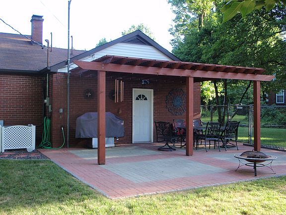 Many updates in this full brick home. Inside you will find a cozy kitchen with pantry, new countertop & backsplash and tile floors. Kitchen opens to the spacious dining/family room with hardwood floors, wood burning fireplace & large windows. Both bedrooms are good size with new ceiling fans & double closets. Gorgeous full bath with jetted tub, stand up shower, his & her sinks & tile backsplash & floor. Nice breezeway is perfect for enjoying the evenings. Nicely landscaped yard with newer shed & pergola with brick patio. Other features include foyer entry, fresh paint, newer light fixtures, oversized garage & large fenced in yard. Move in ready & a MUST SEE!!!