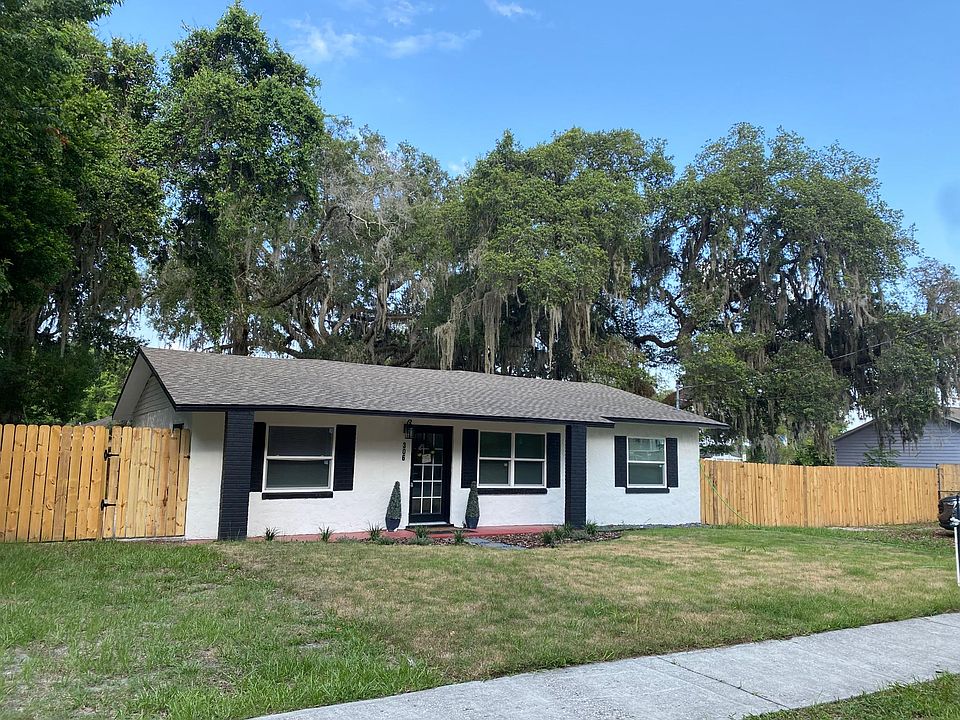 Completely renovated cottage-style house. Everything is new. Vinyl plank flooring new windows and window treatments, new Bathrooms, new Kitchen stainless steel appliances. Great location close to schools, amenities, and The Villages. Five-minute drive to Brownwood Square. Easy access to Turnpike and I 75. Situated on a large mature lot with oak trees and shade. No HOA. Off-street parking and able to park boat or RV on the property. Big back yard for a pet Mid term rental opportunity. Strictly nonsmoking. Off-street parking. There is space to park an RV or boat on the property. Flexible lease arrangements will be considered. As will bedroom set up. In mid term rental utilities included,