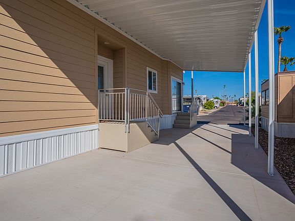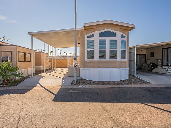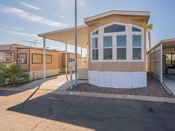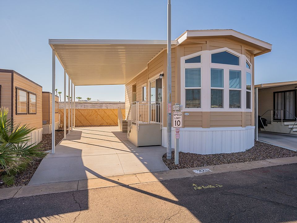 A fantastic opportunity, this 2022 one bed one bath, built by Champion, features a warm and welcoming interior! Entertain your guests in your cozy flow-through living/dining area, and brand new kitchen, which features laminate countertops, brand new appliances, and plenty of cabinet storage. The simple and classic bathroom offers low-maintenance waterproof vinyl and a new fiberglass shower. An alluring bedroom awaits down the hall to become your own private, personal sanctuary. With all of these wonderfully desirable features, this home only gets better with the added bonus of a brand-new HVAC system. Parkhaven Estates, a 55+ community, is ready to welcome you to your new home. Call us at 480-830-1080 to schedule your private viewing today! *Your peace of mind is our top priority! That's why we have partnered with 2-10 Insurance Services for our home warranty program. And we'll cover your first year at NO COST to you.*