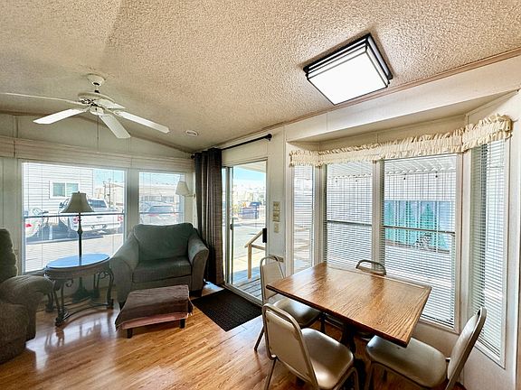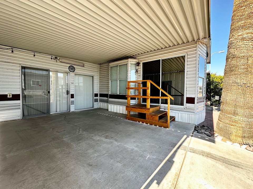 Motivated Seller! Discover the perfect winter retreat or year-round haven in this charming 1-bedroom, 1-bathroom home located in the heart of the sought-after Parkhaven Estates 55+ community in Mesa, AZ. Renovated in 2022, this 385 SF gem features a versatile Arizona Room with a queen-size Murphy bed, deep closets, and sliding glass patio doors that open to a private patio and covered driveway-ideal for happy hour gatherings or relaxing evenings. Move-In Ready! Inside, enjoy a thoughtfully designed layout with vaulted ceilings, ceiling fans, and modern conveniences like stackable laundry, a pass-through kitchen with ample cabinetry, a built-in hutch in the dining area, and built-ins in the primary bedroom. The bathroom is equipped with a low-step tub and linen storage for added ease. New paint in select rooms and furnishings included make this home move-in ready-just bring your toothbrush! Step outside to your low-maintenance private patio, complete with a BBQ grill, small tool shed, and shaded space thanks to screen panels along the driveway. The home is set up with Cox fiber optic internet, perfect for remote work or staying connected during your snowbird adventures. Community Highlights: Parkhaven Estates is a vibrant, pet-friendly 55+ community offering two pools, pickleball, shuffleboard, billiards, curling, and jam sessions. Located near everything, the community also provides Mountain Views and extensive outdoor living spaces for an active and social lifestyle. Guest parking is conveniently located across the street, and the land lease fee is $811. Don't miss this opportunity to enjoy a low-maintenance, friendly community close to shopping, dining, and entertainment. Whether you're a snowbird or looking for year-round comfort, this home is the perfect fit! Schedule your tour today! #ParkhavenEstates #SnowbirdLiving #MesaSnowbirds #55PlusCommunity #ActiveSeniorLifestyle #FurnishedHome #ArizonaRoom #LowMaintenanceLiving #PickleballCommunity #MountainViews #RemoteWorkReady #PetFriendlyRetirement #MesaAZ #Mindyknowsmobiles