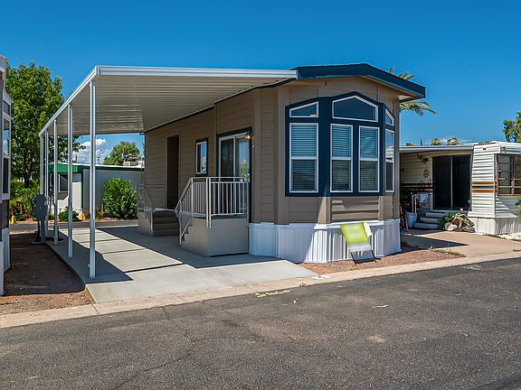 A fantastic opportunity, this park model home features a warm, and welcoming interior! Entertain your guests in your cozy flow-through living/dining area, and brand new kitchen, which features laminate countertops, brand new appliances, and plenty of cabinet storage. The simple and classic bathroom offers low-maintenance waterproof vinyl and a new fiberglass shower. An alluring bedroom awaits down the hall to become your own private, personal sanctuary. With all of these wonderfully desirable features, this home only gets better with the added bonus of a brand-new HVAC system. Parkhaven Estates, a 55+ community, is ready to welcome you to your new home. Call us at 480-830-1080 to schedule your private viewing today!