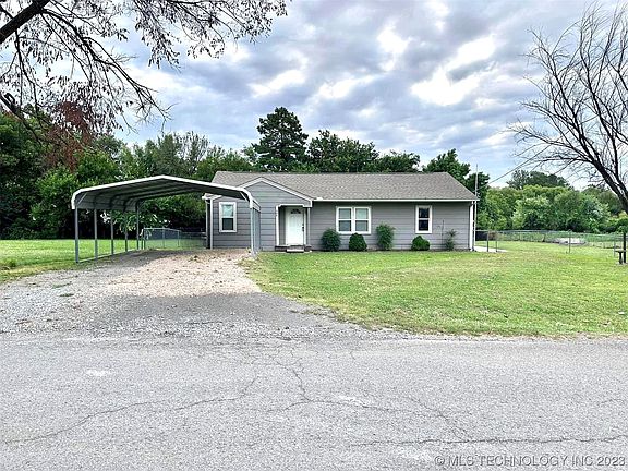 Move in ready home on wonderful half acre fenced lot with dog run and with a large 30X24 work shop with windows. Great location within 5 minutes of restaurants and Grocery stores yet beautiful country setting. Home has lots of updates since 2015! Large 2 car Carport, Updated windows, carpet, Tile, some hardwoods, Central heat and air, paint, kitchen appliances and white kitchen cabinets, roof, some electrical and plumbing. Huge patio, a person could build a huge great room and still have plenty of patio. Close to Fort Gibson lake. Must see!