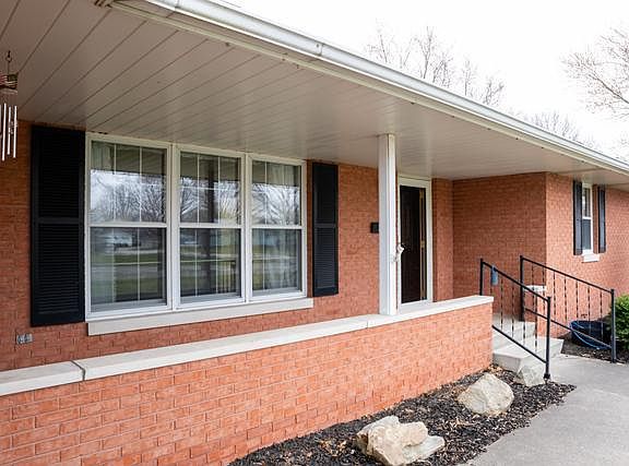 This stately brick ranch offers great curb appeal with its hip roof, wide front porch, and generous setback on the oversize (nearly 1/3 acre) lot. Although located in town, the backyard overlooks an open field, further enhancing privacy and the sense of wide-open space. Inside the house highlights include a 97% ultra-high-efficiency Lennox furnace, Heil central a/c, premium Andersen double-paned windows with integrated 3rd pane storm windows for added efficiency. Brazilian cherry floors run from the foyer through the living room, hallway, and all bedrooms. The kitchen features a huge 13'5" x 11'7" breakfast area that's filled with natural light from the windows overlooking the backyard. The kitchen comes equipped with a full complement of appliances, and a wall of floor-to-ceiling pantry cabinets supplement the generous cabinet space. One of the full baths is located off the kitchen near the laundry and garage, featuring a tub with cultured marble tub surround and shower. A 12'10" x 12'5" family room with large sliding windows, knotty pine walls & ceiling, and it opens to the 21'x16' screened porch that overlooks the private backyard. There is an additional stamped concrete patio on the north side of the house. A large garden shed supplements the storage in the large 2-car attached garage with built-in shelves and storage cabinets. The three bedrooms are located near the 2nd full bath with oversize garden tub. Two of the bedrooms offer walk-in closets. The 3rd bedroom was most recently used as a hobby/craft room, and it features numerous recessed lights. See HD photos and 3D virtual tour!
