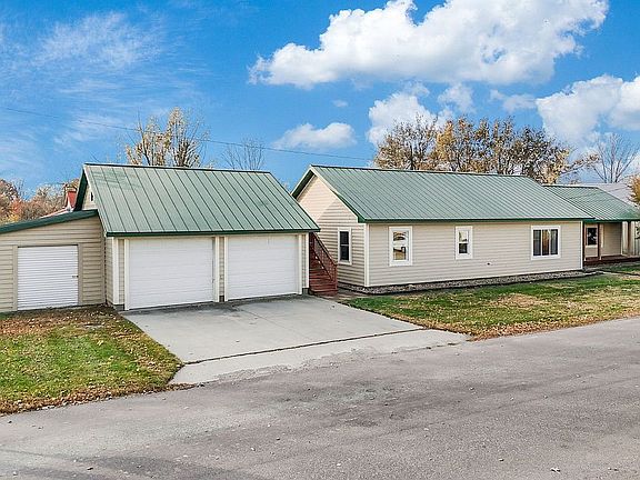 If you're looking to escape this city and enjoy a small town lifestyle, this 3-bedroom ranch in Madrid may be just what you're looking for! You'll greet your guests on a welcoming covered front porch that has room for your outdoor furniture. When you step inside there's a spacious entry foyer with a tiled floor and a vaulted ceiling. This area flows into the main living space where you'll discover a sunken living room featuring engineered hardwood floors. In the winter months you'll love the cozy atmosphere created by a wood burning stove. There's a cozy kitchen with natural knotty pine cupboards. You'll love the convenient peninsula style breakfast bar and the kitchen appliances are included. Off the kitchen, you'll discover a large dining area that can also provide space for an office or a nook to curl up in with a good book. There's a knotty pine vaulted ceiling and engineered hardwood floors in this part of the home. You'll find 3 nice sized bedrooms and two full bathrooms. One bath also includes the laundry and the washer and dryer are included. You'll appreciate the heated 2-car detached garage that's wired with 110 and 220 electric. Above the garage there's also an upper-level loft for storage. There's also a utility shed attached to the side of the garage and this home has a steel roof. Everything is convenient in Madrid and you're just a few blocks from the High Trestle Trail. You'll be just a short 20 minute drive to bustling Grimes with all the major grocery stores, big box outlets, dining establishments, and more. Don't miss your opportunity to own this home. It's move-in ready and provides a great opportunity to enjoy a small Iowa town lifestyle!