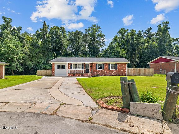 Enjoy the outdoors with a large fenced-in backyard, storage room off the back of the house, and a covered storage area on the back patio—perfect for all your needs. Nestled on a quiet cul-de-sac, the home offers both privacy and convenience, just minutes from Camp Lejeune's main gate, shopping, and dining. Best of all, you'll enjoy the benefits of being close to the city without the added city taxes. Schedule your showing today!!
