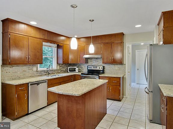 This home is beautifully updated with ready to a move-in condition in mind. Elegant & spacious 4 bedrooms, 2 ~ bath colonial on larger size lot with privacy on a cul-de-sac street in the popular Pleasant Grove neighborhood. Extra wide driveway with side entry garage leads to a long walkway to the beautiful entry foyer with tile flooring & large coat closet to greet family and friends. Traditional dining room with hardwood flooring for all large family gatherings and formal entertaining. The formal living room has 2 large windows & double doors that open it up to an extra large step-down family room with brick raised hearth fireplace, hardwood flooring, new double Andersen windows on one side as well as another set of double Andersen windows on the other side overlooking huge deck. Newly updated kitchen with beautiful granite countertops with mosaic tile backsplash, center island with extended granite countertop & pendant lights, recessed lighting, brand new Whirlpool stainless steel range, range hood, dishwasher, garbage disposal & almost new stainless steel refrigerator and microwave. Bright breakfast eating area with French doors that open to a huge deck & private rear yard for all your summer entertaining. Conveniently located pantry, powder room & laundry room in the rear hall leading to 2 car side entry oversized garage. Brand new carpeted stairwell & the upper foyer lead to huge master bedroom suite with adjoining sitting room/nursery/office including a convenient closet; large size walk-in closet, newly remodeled dressing area with skylight, hardwood flooring, new double sink vanity with granite countertops, new mirrors & lights & separate bath with tub/shower. Three additional large bedrooms with large closets & a hall bath with tub/shower, separate newly remodeled dressing area with vanity, sink with granite countertops, mirror & lights & a large linen closet. Finished walk-out basement with French doors to under deck flagstone patio. Huge recreation room with plenty of room for an entertainment center as well as a playroom/exercise room. Separate office with a closet that can have many different uses. Large storage closet area with built-in shelving perfect for pantry & under stairs closet. Separate unfinished area for utilities as well as extra storage/workshop. Improvements: Updated kitchen & baths, complete house vinyl siding, gutters with leaf guards, heat pump & a/c, roof, water heater, hardwood flooring, concrete walkway,, deck, finished. walkout basement