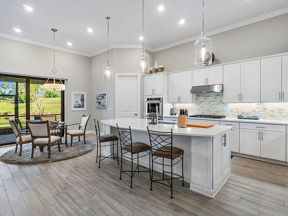 Spacious Stonewater plan in the beautiful gated, Divotsta-Built Community of Sonoma Isles. This brand new home is a ranch style with 3 bedrooms, 3 bathrooms plus a den/office opening up through French doors to a huge great room and Gormet kitchen all overlooking lake and high burmed conservation area. Kitchen features Kitchen-Aid Built-In Double Ovens and cooktop, desighner white kitchen shaker style cabinets, Calacatta gold polished Quartz countertops, center island and breakfast nook. Wood look porcelain tile throughout, 13' ceilings, and impact glass. The community features a beautiful clubhouse with fitness center and resort-style pool.