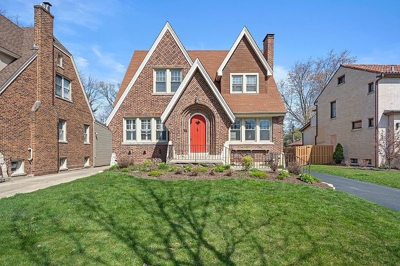 Charming Brick English Tutor in historic Riverside! This updated home features 3 bedrooms on the second level and a large bedroom in the walkout basement, with a full bathroom on each of the three levels. It also has an additional spacious powder room on the first floor. Walk into a sweet foyer that opens up to the grand staircase with peripheral views of the formal dining room boding sprawling French shutters. And opposite, a massive formal living room with a classic wood burning fireplace; large enough to create two living spaces. These rooms are filled with stunning crown molding and arched doorways that are classically inviting. Sweep into a large, gourmet eat-in kitchen with tall cherry cabinets and granite countertops and a space large enough to add an island or larger kitchen table, all overlooking the private, deep backyard with beautiful gardens. The first floor also hosts a bright and airy vaulted ceiling family room, perfect for entertaining. Walk out the French doors of the family room onto a deck and down to a private paved patio. The back and front yards have been professionally landscaped and a drainage system with rain gardens installed on the perimeter of the property. Tons of greenspace and new, mostly fenced in yard. Entire property has a new sprinkler system. You won't find a finished basement more functional and cared for than this, with wainscoting throughout, a rec room that can double as a 4th bedroom, a full bath, office space, ample storage, new laundry room and appliances, and a new mudroom next to the walkout basement door. Updates include: new garage door, new water heater, furnace/AC and many more interior updates to make this house feel like home. This is a must see in and town that oozes character and belonging! All of this on a coveted block in town with one of the best school districts in the area!