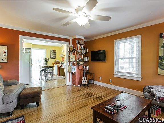 Nothing quite like it on the market! Tastefully renovated 1950's cottage on a beautiful corner lot, tucked away in Athens' bustling Eastside. Full length covered front porch welcomes you into a bright and open living room with refinished original oak floors and a lovely tiled kitchen with a cast iron basin sink, butcher block counters and new gas range and oven. Completely renovated bathroom with all new tile, tub, fixtures, lights, vanity sink and shower window. Massive primary bedroom and sizable secondary bedroom with private access to the newly-added back deck and outdoor space. Convenient laundry/utility room with newer washer and dryer and large sliding patio doors that offer great natural light and a great view of the backyard. Other notable renovations/upgrades/improvements to the property include: New HVAC system and ductwork. New septic system. New windows throughout. Newer metal roof with new gutters added. New paint inside and out. Large full length back deck addition with new interior/exterior doors. Home sits on just under a half acre lot that has been tediously tamed, landscaped and loved by the sellers. Over 50 varieties of perennial shrubs and plants. Various fruit trees and bushes producing blackberries, raspberries, blueberries, figs and peaches. Old growth oak and hickory trees. Tiered side garden and raised box beds. Winding footpaths. Corral-style fencing. Large backyard exposed rock island leading down to a seasonal stream and footbridge. Simply put- Convenient location, character galore, move in ready and very easy to love! An absolute must see!