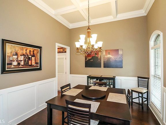 Beautiful waterfront, Debi-Ann 5 BR/ 4.5 Bath floor plan in The Tiffany w/ 3 car garage & in-ground pool. Convenient to schools & shopping. Spacious kitchen w/ granite countertops, large island, full gas stove & add. electric wall oven, built-in microwave & walk-in pantry. Coffered ceilings and hand-scraped wood flooring in formal dining & living room. Trey ceilings & carpet in master BR; Spacious MA bath, w/ large WIC, tile shower, dbl vanity, jetted tub. Upstairs: large custom theater room with SS & half bath.