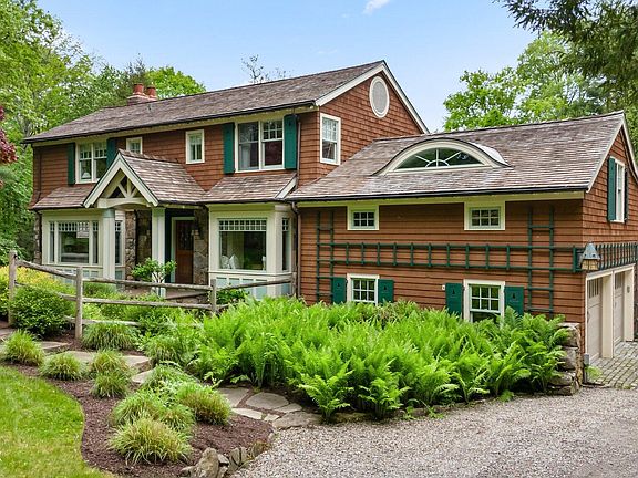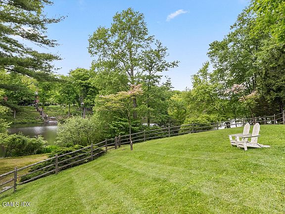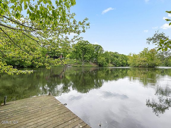 Discover one of Greenwich's most picturesque settings on the serene banks of Frye Lake. This exceptional 2.84-acre lakefront property boasts a private dock, offering year-round enjoyment of swimming, boating, fishing, and ice-skating. The 5-bedroom, 3.1-bath home is perfectly positioned to showcase breathtaking views of the tranquil lake, stunning free-form pool with waterfall and glorious gardens from rooms on every level. With the ambiance of a country retreat yet just minutes from downtown Greenwich, this property offers potential for substantial expansion. Additional features include a full house generator, radon system, and a two-car garage. Zoned for North Street, CMS, and GHS schools. Located in FEMA ''X'' zone, indicating minimal flood hazard. The welcoming front entryway opens to a formal living and dining room with a charming bay window seat. The side entrance leads to the mudroom, laundry, sunlit gourmet kitchen and breakfast nook. Sip morning coffee from the rear deck overlooking the pool and lake. An in-law suite is steps off the kitchen, with the upper level floor primary suite and additional bedrooms accessed separately. The lower level features a spacious family room with built-in cabinetry and a screened porch with slate flooring, offering easy access to the pool and rear terrace.