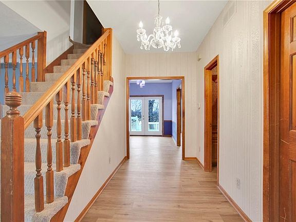 Spacious two-story home with new flooring throughout first floor and in all bedrooms. New Cambria countertops and cast iron sink for easy clean up and maintenance in kitchen. Open staircase in entry, formal living and dining room, breakfast area opens onto deck, large first floor family room with fireplace. Walkout basement with fireplace is ready to be finished.