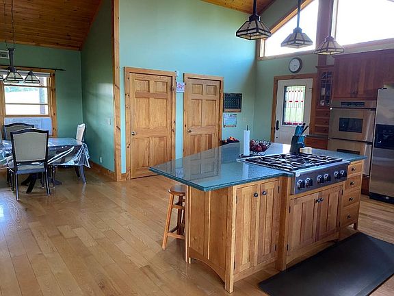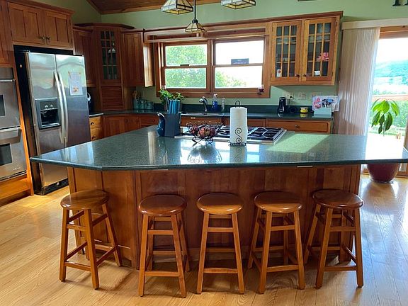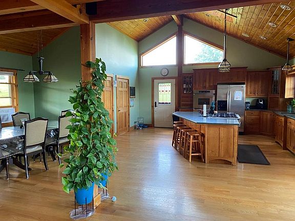 Scenic lake views of Canadarago Lake in this custom-built 4+ bedroom 3 full bath Contemporary home with over 4000 sf of living space and on almost 19 acres! The first floor has an open floor plan with cathedral ceilings and floor-to-ceiling windows bringing in natural lighting and a fabulous view! The chef's kitchen has a 6-burner range, double ovens, QUARTZ countertops, a large island and a great walk-in pantry. Great for entertaining or bringing out the chef and/or baker in you! The formal dining room is off of the kitchen along with the front entryway and the living room with a two-story stunning stone fireplace and views of the lake! Down the hall are 2 bedrooms and a den that walks out to the back wrap around porch along with a full bath that completes the first floor. Radiant heat on the first floor.Upstairs is a very private master area with a landing overlooking the vaulted living room with floor to ceiling windows and views of the lake and beautiful mountainside. Master bedroom has a large walk-in closet and a full bath with a jacuzzi tub and radiant heat.On the lower-level walkout you have a rec room, Bar, additional full bath and bedroom/office with entrance to the at