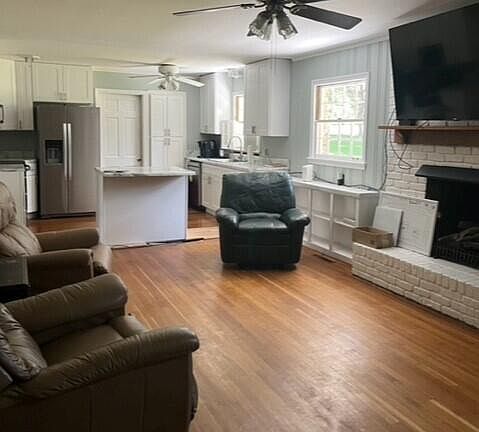 - Fireplace features: Brick, Den, Gas Log