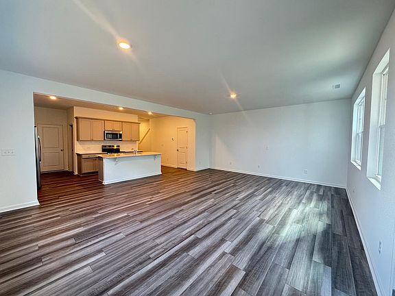 This new two-story townhome has an inviting contemporary design. The main-level Great Room flows seamlessly into the dining room and chef-caliber kitchen, while the patio is perfect for outdoor activities. Upstairs are two secondary bedrooms and the owner's suite, complete with a walk-in closet and full-sized bathroom. Washer-dryer, Stainless steel appliances included.