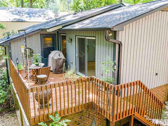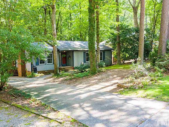 Hard-to-find Kildaire Farms Contemporary Ranch w/Air Conditioned Basement, Roof w/Warranty 2016, Gutters 2008, Windows & Sliding Glass Door 2009, Maple Floors, Carpet, Cedar Siding, Large Pantry, Refrigerator, Microwave, Smooth Top Stove, Ceiling Fan, Whirlpool Tub, Main Floor Laundry w/Extra Cabinets, Storm Doors, Deck overlooking a Wooded Yard, Patio. Desirable Cary location: Optional Pool, Tennis & Gym within Walking Distance. Close to Starbucks, Walking Trails, Community Playground, and Trader Joe's.
