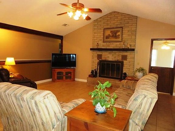 Great property. Fireplace in the living room, bonus room off the living room, tile floors thru out most of the home, Saltillo tile in the bonus room. Great utility/hobby room with a tub for grooming dogs if buyer wants it to stay. Covered patio. Entire property is fenced & x-fenced. 40 x 60 horse barn with 5 stalls, tack room, wash rack. Additional 15' covered area on both sides of barn. Roll up door at one end. Water & electricity to the barn. Workshop with carport. Huge pond with dock and fountain