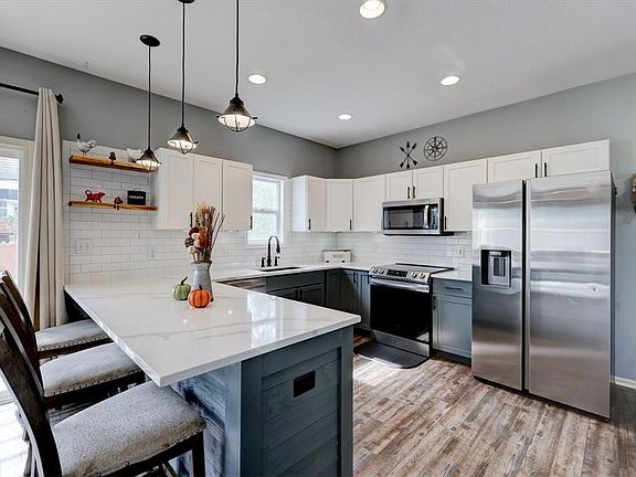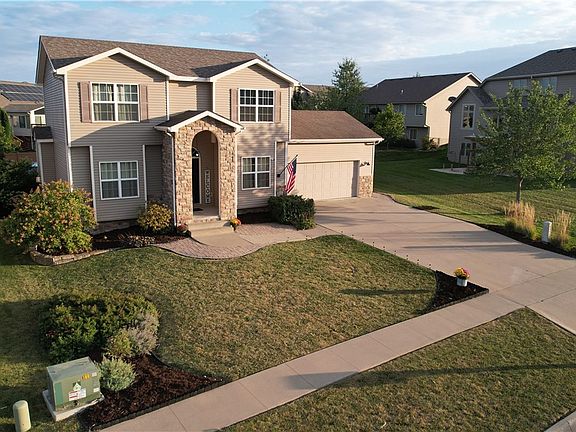 Welcome to this amazing, 4 bedroom, 3.5 bath, two-story updated home, located in the desirable Orchard Hills development. This home offers over 2,300 square feet of finished living space, amazing curb appeal, an incredible stone arch exterior, & grand entryway. From there, you will find a stunning updated main floor with beautifully finished solid kitchen cabinets, floating shelves, modern pendant lighting, quartz countertops, under cabinet lighting, stone fireplace, and sliders to the spacious entertaining outdoor area. The backyard is a highlight of this home, with its low maintenance composite fencing, landscaping, stamped concrete patio, recently painted pergola, raised garden/flower beds, corner storage shed, custom firepit, & above ground pool! The main level also boasts a designated dining area, office space, half bath, & heated 2-car garage that doubles as a bonus entertaining area. The finished basement has 2 egress windows that allow natural light to flow into the family room area & fourth bedroom, plus a full bathroom, large utility room, walk-in closet off the 4th bedroom & continuation of the LVP flooring. The upstairs primary suite has it all, with its accommodating size for a larger bed and furniture set, dual vanities, walk-in closet, and tiled shower/tub combo. Two more bedrooms are upstairs with convenient 2nd floor laundry & another full bath. All the features, recent upgrades, and location make this home a must see! Schedule your showing today!