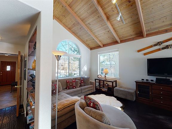 You won't have cabin fever with this Mammoth home for all seasons when you let the good times roll - spring, summer, fall and winter! This Trails home has easy access to all of Mammoth - whether catching the ski shuttles at Vons or shopping. It is all just minutes away. This 4 bedroom, 2½ bath home has mountain views with main floor living for maximum outdoor access and livability. Even with the record snowfall of the past few years, the first level has never been buried. There's abundant storage for all your gear in the expanded garage as well as huge closets in the second-floor bedrooms and hallways. An upstairs laundry is the ultimate convenience. The 4 bedrooms easily accommodate queen or king size beds. The master en-suite bathroom faces south and has mountain views. The master bath has double sinks, jacuzzi tub, walk-in shower and heated ceiling lamp. The great room 6' windows capture the mountain views while you're watching the snowfall in the comfort of the humidified heating system. The kitchen has stainless steel appliances and a 4 seat bar opens to the family game room. Quick access to the covered spa or the cozy fireplace makes for the perfect spot to enjoy a quiet evening after a day of fun. With a flat yard there is room for kids and pets to romp or enjoy a game of horseshoes while you watch from the ski chair or your patio table. Enjoy all the seasons with your friendly neighbors here in the Trails. We have a recent price reduction to $965,000.