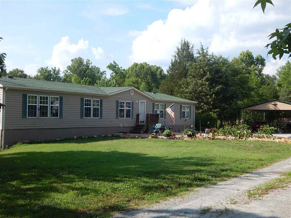 ACREAGE & PRIVACY! Very large manufactured home sitting on full basement and surrounded by almost 15 acres! Long gravel driveway w/gate, 4 car metal carport, and a double garage in basement. Huge master bedroom (14 X 30) with a huge walk-in closet. Master bath has double vanity, garden tub, and separate shower. The living, dining & kitchen areas are very open and family room has a fireplace. Lots of built-ins. All new floorcovering! Large laundry room w/cabinets and room for freezer. Insulated tilt windows. Outside you'll find fruit trees, garden space and fields that could be used for pasture. Back of property is bordered by a creek and even extends beyond the creek on one side. There is also lots of timber on this property that could be harvested or kept as a haven for the deer & other wildlife! AHS Home warranty included.