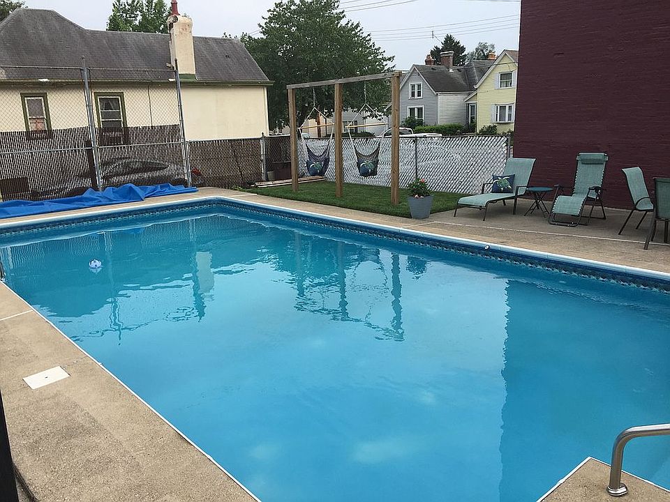 In-ground pool on dbl lot. Renovated 2 story home w/lg rooms & 9'+ ceils. Features newer insulated windows, HVAC (gas), roof, ceramic tile & laminate kit floor AND new w/w carpet & interior/exterior painting thruout. Great buy for $$