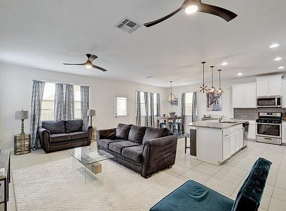 Beautiful two story home in the desirable Shadow Creek neighborhood. Oversized tile throughout, open concept for the kitchen and living. High-end finished kitchen including stainless, granite counters, large center island and upgraded lighting. Beautiful wood accent wall in upstairs living. Large primary suite, bath includes dual vanity and walk-in shower. Convenient to Kyle Crossing near shopping and dining.