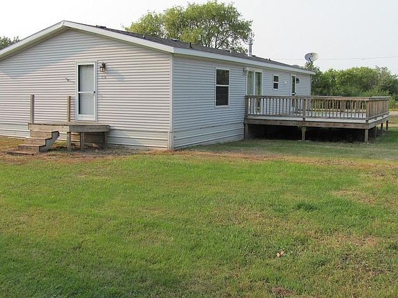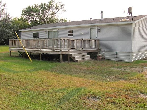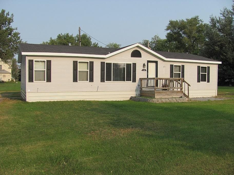 Small town living.Easy driving distance to Jamestown.Very well maintained 3 bedroom, 2 bath manufactured home in quiet neighborhood, but near school.Large deck.Three entry doors. Large detached 2-stall garage that is insulated and heated.Storage shed. All on 2 lots.
