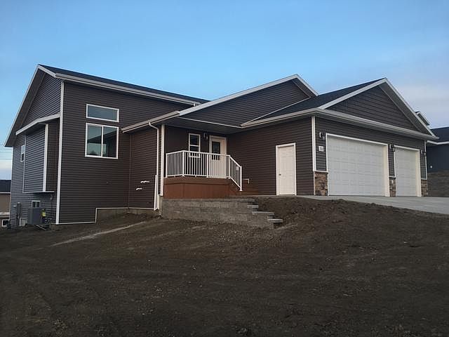 Just finished with WALKOUT basement with low specials and over 1700 sqf on main floor! Side yard for RV/BOAT pad! Southern exposure driveway. Cul-de-sac. Very private NEW subdivision with minimal traffic, ADJACENT to an elementary school. 3 bedrooms, 2 bath on main floor, along with MAIN FLOOR LAUNDRY. Living/dining/kitchen area is HUGE, all open with HIGH CEILINGS. QUARTZ counter tops, high efficiency furnace, FULLY FINISHED GARAGE (32x30), white trim, wood railing, stone accent on front facade, BIG KITCHEN, basement insulation done, STAINLESS STEEL APPLIANCES are just some of the UPGRADES this home has. Please come in for private showing. House qualifies for 2 year tax except program by City of Mandan. MB Homes - since 1973, family owned and operated! Not one unsatisfied costumer yet! INVESTMENT GRADE HOME!