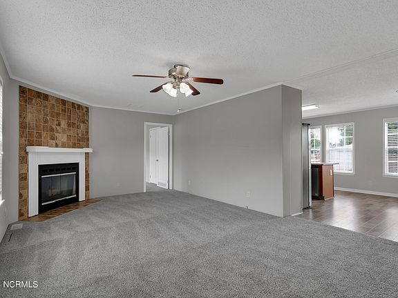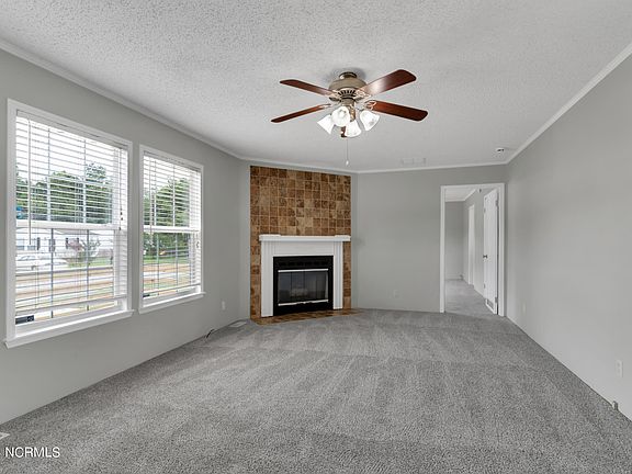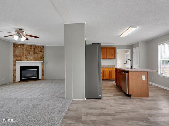 Inside features: new carpeting and padding in living room and owner's bedroom, new vinyl flooring throughout kitchen, laundry and baths. Freshly painted rooms. Cozy fireplace and large eat in kitchen with stainless steel appliances, pantry & island.