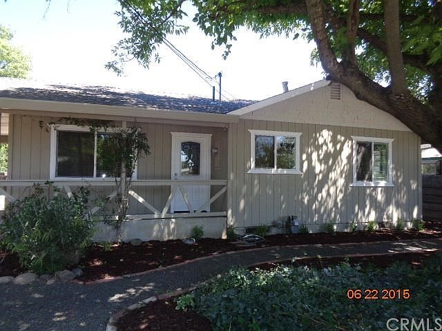 Fall in love with this immaculate home, it is all in the details, beautifully redone home, Birch cabinets with squared glass doors, built in wine rack, pull out bins, eating bar. Plenty of counter space. Handsome Bamboo flooring in living room and kitchen, dual pane windows with plantation blinds throughout the house, central heat and air, limestone shower walls, custom ceramic tile floors in bathroom. Indoor laundry hookups. Newly laid carpet in the bedrooms. Recently painted interior and exterior, Spacious deck and additional brick patio, generous back yard with room to build a garage. Front yard landscaped with drought tolerant plants.