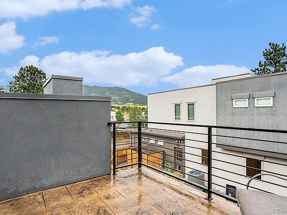 This beautiful contemporary home in North Evergreen is just minutes from Evergreen Parkway and the splendor of Elk Meadow Park, Bergen Peak, and miles of trails for hiking and biking! Built in 2020 and like new, the home is designed for Main Floor Living, with the Garage, Great Room, Kitchen, Dining, and Primary Suite all easily accessible on one-level. The open staircase is hardwood with metal railings, and is flooded with light from tall windows rising to the sunny, open landing above. Set up your office or yoga space here, beneath windows with views of Bergen Peak! The attached balcony is private and perfect for morning coffee while you take in the view. The upstairs Guest Suite features an en suite bath and walk-in closet. On the main floor, the contemporary Kitchen offers a large island, extensive storage and counter space, high-end appliances, and soft-close cabinets and drawers. The Kitchen opens to a lofty Great Room, Dining area, and wrap-around patio beyond. A beautiful distressed-finish heated concrete floor spans the main level, with hardwood upstairs. Enjoy the outdoor patio and grill area in the evening, with a fenced yard and landscaping. This is a perfect home for entertaining and family gatherings, with the convenience of main floor living, and easy access to Evergreen, skiing and Denver!