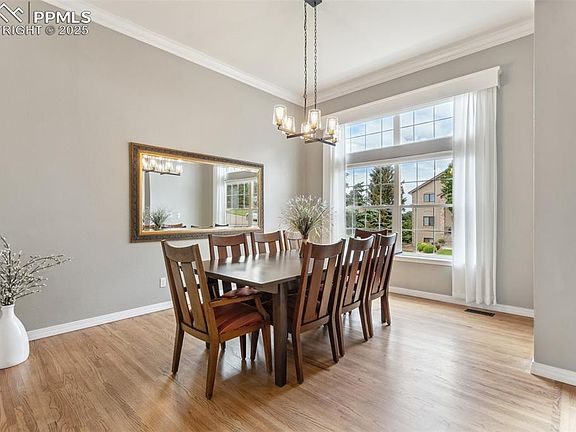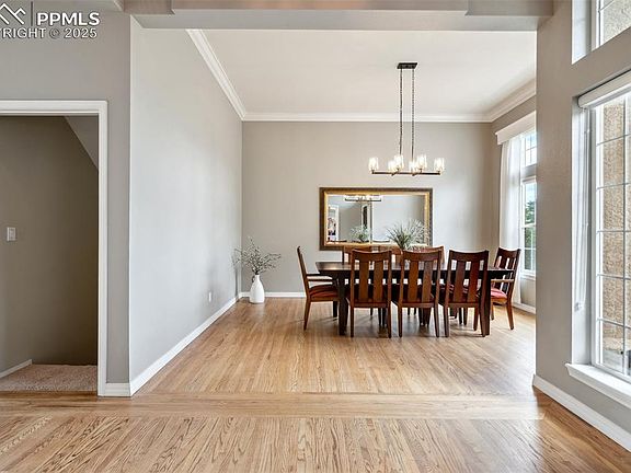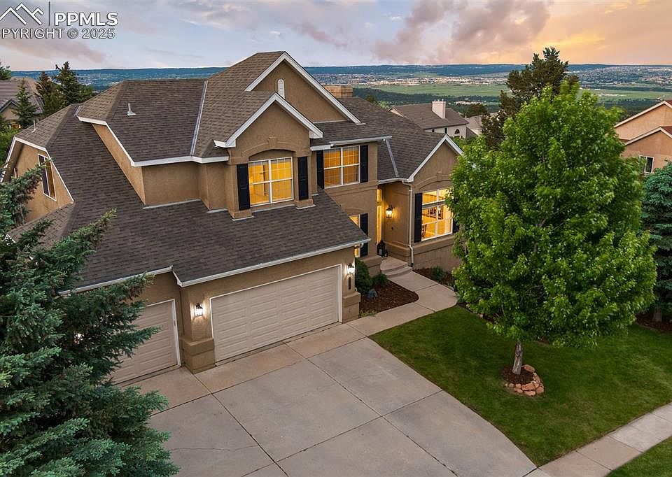 Your Dream Home Awaits in Prestigious Peregrine. Nestled in the highly sought-after Peregrine neighborhood in NW Colorado Springs, this exceptional Keller Monet floor plan offers the perfect blend of luxury, comfort, & Colorado beauty. Inside, the sun-drenched interior pours an abundance of natural light through oversized windows, framing breathtaking views of Blodgett Peak, city lights & surrounding mountains. The foyer shines w/ high ceilings, hardwood floors & 2nd floor overlook balcony w/updated modern railings. A private office opposite the spacious dining room greet you at the entrance. Follow the natural light to the family room w/wall-to-wall windows, a gas fireplace & stunning light feature above! The updated Kitchen is a showstopper w/quartzite countertops, sleek new cabinetry, stainless steel appliances, beautiful island w/more storage & an oversized glass sliding door to walk out to the backyard - a peaceful oasis featuring a tranquil pond, a custom mountain bike track, & even a basketball court, all surrounded by mature landscaping & panoramic vistas. The main-level primary bedroom is a retreat complete w/a designer chandelier, adjoining 5-piece en-suite bathroom, & walk-in closet!! Make sure to check out the custom designed built in cabinets in the mudroom & laundry next to the entrance to the 3-car garage! Upstairs, luxury continues with a junior primary suite w/fully updated bathroom, 2 guest bedrooms & another completely renovated bathroom! A guest bedroom & remodeled bathroom are showcased in the walk-out basement along w/ a large rec room - perfect for any crowd! Additional features: Central AC, brand new Water Heater, Radon Mitigation System, Security System, Garage Amenities: cabinetry, EV Plug & bike racks, updated light fixtures and LED can lights throughout home - all in Academy School District 20! This home is more than a place to live—it’s a lifestyle. Come experience the rare blend of nature, city views, & refined living in Peregrine.