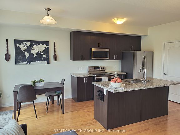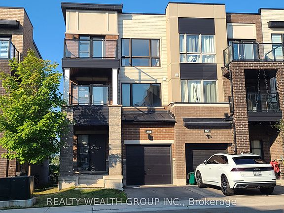 Rare end-unit townhome (Feels like a Semi) boasting a spacious fourth-bedroom family room and stunning pond views. This modern gem offers an open-concept main floor with a bright living area, dining room, and kitchen, all overlooking the serene pond, plus main-floor laundry and garage access. Upstairs, three generous bedrooms include a primary with a large ensuite and breathtaking pond views, complemented by a second bedroom with a charming street-facing balcony. The third-floor family room, doubling as the fourth bedroom, features a two-piece ensuite, street view balcony and sliding glass doors to an incredible sun deck with panoramic pond views. Enjoy tranquil walks along the pond's path, modern amenities, and a home in excellent condition-perfect for families seeking a rare, scenic retreat in Oakville. Short walk to the park and school see photo.