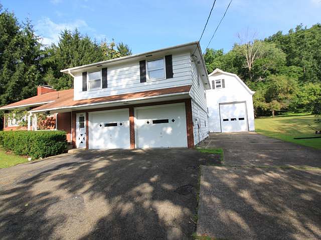 This beautiful home comes with an awesome 1200 sq ft detached garage that can hold a boat or an RV camper, room for a workshop, and lots of other storage! The 2nd floor would make a great guest house, the 3rd floor has 1,200 sq. ft. of storage! The garage offers many possible uses! The beautiful move in condition raised ranch sits on ½ an acre of land that backs up to the woods. Home security system (not hooked up), newer boiler system, Culligan Reverse Osmosis system. Main floor foyer has built in shelves, living room with beautiful fireplace, stainless steel liner, spacious kitchen, dining room, half bath and lots of large windows for natural light. 3 bedrooms on the 2nd floor and a full bath. One bedroom has a large balcony overlooking the backyard and connects to the 2nd story of the awesome garage. Lower level laundry area leads to a back covered porch. Finished area in the basement with a 1/2 bath, office and a den with fireplace. This lovely home is a great place with space!