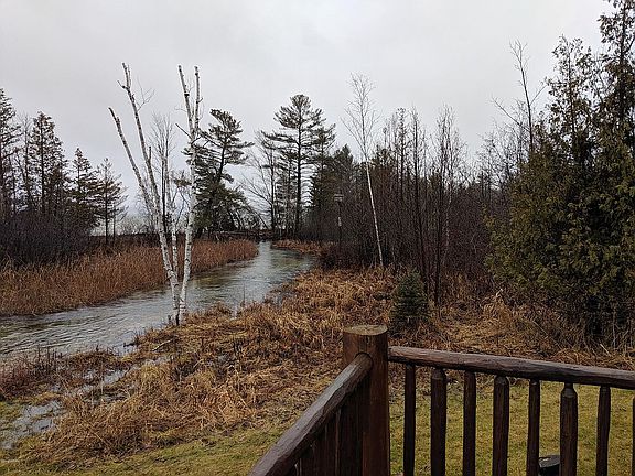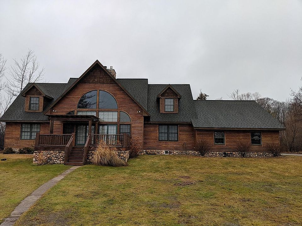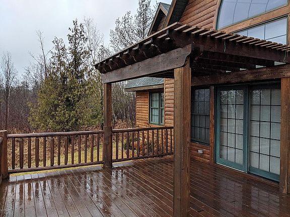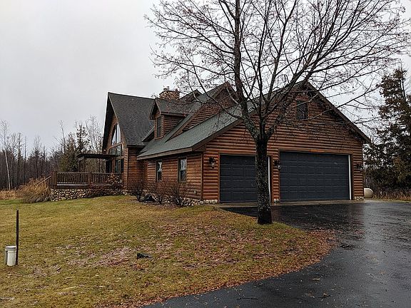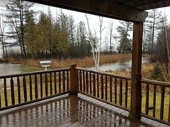 Outstanding log home situated on nearly 11 acres of gorgeous woods and terrain and is bordered by a combined 1750 feet on the Betsie River and Duck Lake. This is just a spectacular setting and supreme recreational homestead. Captivating home has 4 spacious bedrooms, 3.5 bathrooms, 2 massive stone fireplaces (1 on each floor) and quality construction throughout. A perfect blend of knotty pine doors and walls blended with soothing painted surfaces. The lake/river view out your many windows will never disappoint and your recreational pursuits whether water related or woodland bound are many. This property is wonderfully situated near the well known Interlochen Arts Academy and the bustling town of Traverse City is about 15 minutes away.