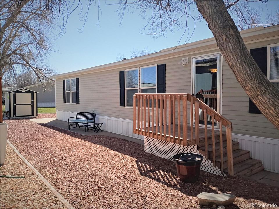 SPACIOUS and well-maintained manufactured home located conveniently off of I-76 and Hwy 7 in the heart of Brighton Colorado. This historical farming community offers mountain views and acres of green farmland as a peaceful retreat from the chaotic city life. This home has a large primary bedroom and attached bathroom including a garden tub/shower with access to the walk-in closet. This open floor plan is perfect for entertaining or enjoying the warm sunlight while cozying up to a nice book. There are two additional bedrooms with their own walk- in closets and nearby bathroom to share. Cozy dining room nook with easy access to enormous open kitchen including an island, gas stove, and new stainless-steel refrigerator. Furnace and air conditioning in great condition along with a brand-new washer and dryer. All bedrooms have fresh carpet and window coverings included. This home is conveniently off the community greenbelt and offers an (8x6) storage shed. This home also has a like new double carport to keep your vehicles in good condition! Eastgate Village requires all prospective residents complete an application for the community. Once under contract buyer is to work with office to be approved to live in Eastgate, which includes background and credit check. Approval is necessary for contract fulfillment. See association tab for contact information. Due diligence required. Lot rent is $829 monthly plus ration billing of water, garbage, and sewer.