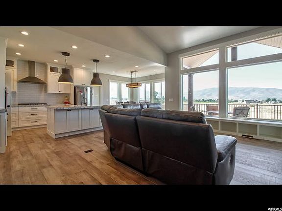 Beautiful new home located at the Crossings in Heber. Will work with buyer's agent. Huge master suite and beautiful kitchen. 3 large bedrooms and a den. Some of the best views in the world overlooking Mount Timp from your bedroom window, kitchen, and covered deck! You won't find anything in this neighborhood for this price. Landscaping is included. Basement is partially done. Has an unlimited hot water heater. Also comes with hot tub plugins and speaker hookups in the ceiling throughout house. Square footage figures are provided as a courtesy estimate only and were obtained from the county. Buyer is advised to obtain an independent measurement.
