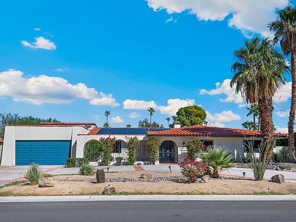 Looking for an income-generating vacation rental, a full-time residence, or a part-time getaway? Here's your chance! Welcome to Casa Verona, a beautiful turnkey, fully furnished home featuring 4 bedrooms and 3 baths, complete with owned solar panels, a large in-ground pool and spa, and breathtaking mountain views! This classic Mediterranean-style estate offers over 3,000 square feet of living space, enhanced by mid-century modern accents. Recent renovations include a chic decorative paint scheme, recessed lighting, contemporary light fixtures, ceiling fans, 2 central A/C units, and numerous custom details throughout. Step through impressive archways into the bright and airy living room, which features an inviting fireplace and two sets of sliding glass doors that lead to the backyard. The stylish kitchen boasts two-tone cabinetry, a full wall tile backsplash, stainless steel appliances, quartz countertops, and breakfast bar seating. The spacious family room, ideal for entertaining, is equipped with a wet bar, pool table, and a spiral staircase that leads to a bonus loft area. The formal dining room includes a closet and can easily be converted into a 5th bedroom. The generously-sized primary suite offers a comfortable retreat with private access to the pool area. All 3 bathrooms have been tastefully upgraded and feature walk-in showers. Enjoy outdoor dining under the expansive covered patio. The attached 2-car garage and semicircular driveway provide ample parking. Located in the charming Gene Autry neighborhood--a quiet, friendly community named after the famous 'singing cowboy' who once lived in Palm Springs--this home is just minutes from the airport, golf courses, casinos, and downtown. Plus, there are no HOA fees or land lease. Schedule your private tour today!