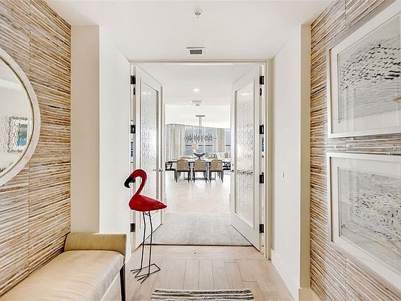 Rarely available, this spacious Antigua Model has been stylishly opened up and completely remodeled to a gorgeous, contemporary gem with breathtaking views of Sarasota Bay, Gulf of Mexico, downtown Sarasota, and Longboat Key Club golf course. With just under 3,000 sq. ft. in the guard gated community of Grand Bay, the home has been professionally and tastefully designed with top shelf finishes and furnishings, including porcelain tile throughout all indoor and outdoor spaces; European cabinetry; quartz and solid surface counters; Wolf & Sub-Zero Appliances. The 3rd bedroom and bath have been converted to a modern den/office space with built in, custom cabinetry, and a new powder room has been added. The laundry transformation includes custom cabinetry, hard surface backsplash, and Fisher Paykel washer/dryer. Furnishings are available under a separate contract. All windows and sliders have remote controlled electronic shades and hurricane shutters. The home has a 2-zone A/C system, and new lighting and switching throughout. For boaters, the seller has a boat slip available in the Longboat Key Moorings Marina within walking distance to the condo. Grand Bay amenities include a beautiful clubhouse, two community pools and spas, a large fitness center with saunas, and tennis courts. Located in the guard gated community of Bay Isles with miles of walking paths through lushly landscaped neighborhoods, all Grand Bay residents have membership to the private Bay Isles Beach Club with its white sand beaches, just a short distance away on the Gulf of Mexico. The Town of Longboat Key, home to the town hall, post office, Publix supermarket, CVS, and other retail services, is just outside the gates of Bay Isles, a short walk or bike ride from Grand Bay. Bay Isles is also home to The Resort at Longboat Key Harbourside golf courses and Tennis Gardens, as well as the Longboat Key Moorings Marina and two Resort - Club restaurants, Portofino and The Tavern. The Resort and Club at Longboat Key has memberships available for use of all of the Club and Resort amenities. Don't miss this opportunity to live a luxury, resort lifestyle!