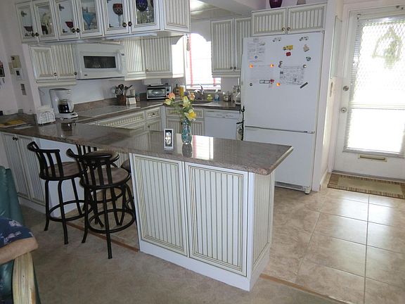 Desirable corner Villa that's designed as a 1-bedroom, but is as big as the 2-bedroom model. Very private glass-enclosed Florida room for extra living space. All new electric service line and electric panel. Updated Kitchen with ''Granite'' counters, ''Granite'' breakfast bar, white wood cabinets, pull-out drawers, newer appliances. Full size washer and dryer in home. Huge walk-in closet. Includes covered carport. Fully furnished and ''turnkey''. Just bring your toothbrush. Community: pool, clubhouse, library, shuffleboard, onsite manager. Close to Gardens Hospital, shopping, and restaurants. Over 55 only. No pets. No Leasing.
