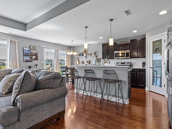 BEST deal in Kokomo. Better than new at a much reduced price. Move in ready, home features many amenities including an open concept with 3 bedrooms and 2 baths. The kitchen has quartz counter tops, newer appliances, walk in pantry and a raised bar top and eat in kitchen area!!!! New carpet has been installed in principal bedroom. The bedroom also includes a large walk in closet attached bathroom. The two car garage has extended storage space! Enjoy the summer evenings cooking out with family/friends enjoying the view a beautiful pond. Annually HOA fee is $175.00. Remember the early bird gets the worm!